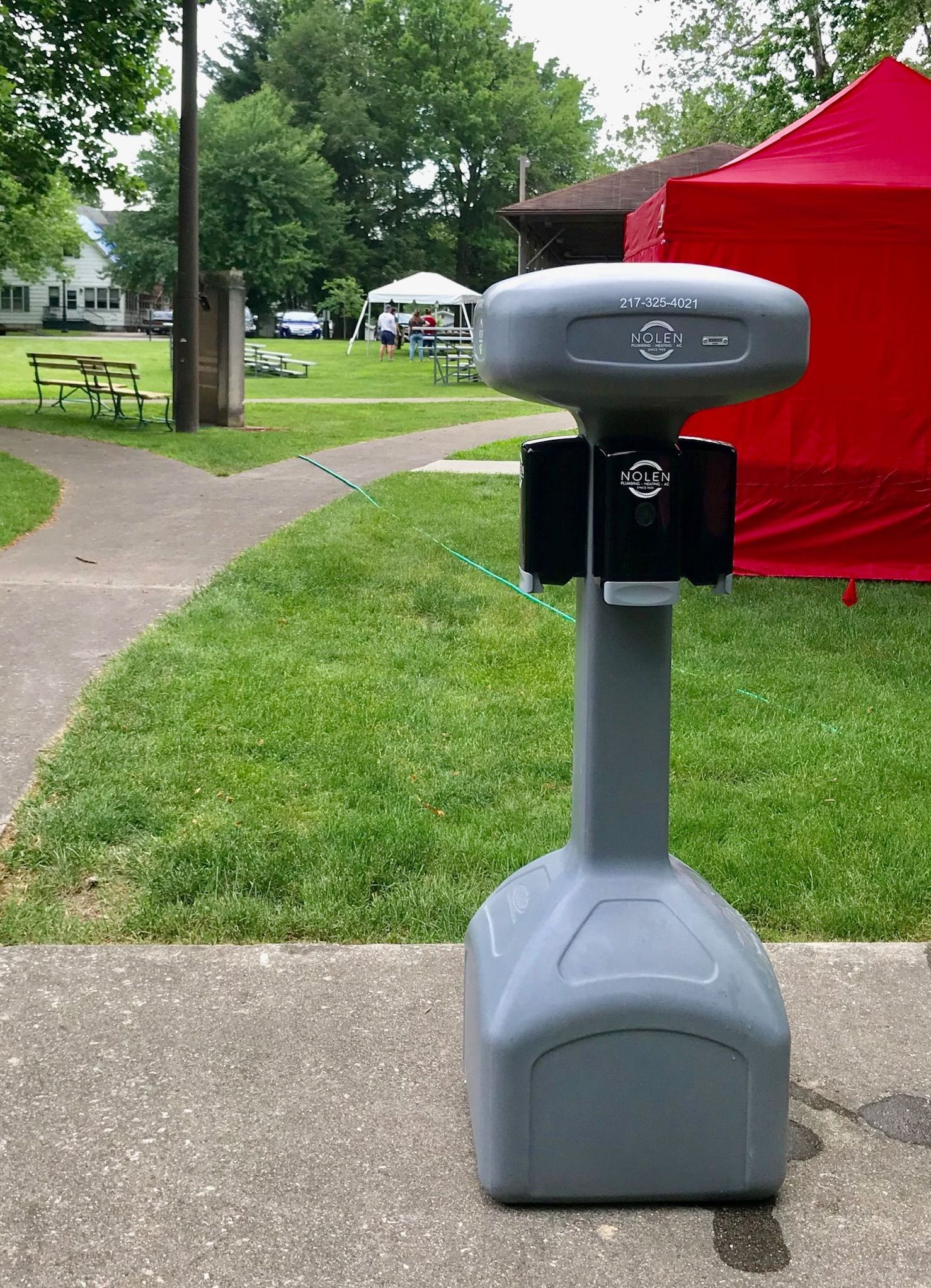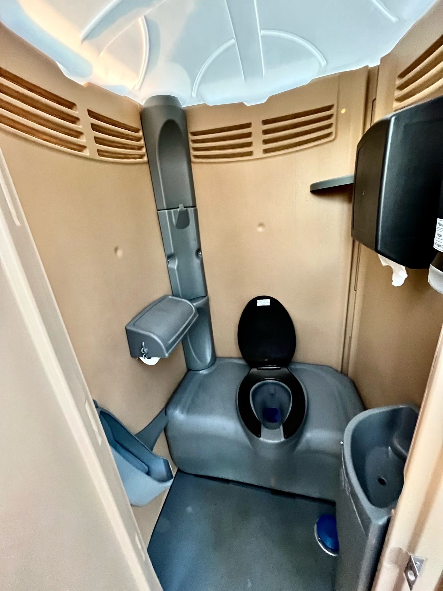 - All our toilets come equipped with sanitizer, but sanitizer stands are utilized to keep guests from needing to go to the restroom to access the sanitizer.